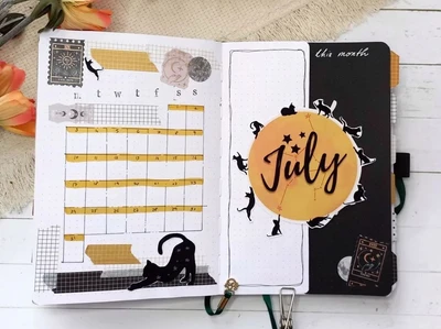 πβ¨ Step into July with this mystical and elegant monthly spread! πΎπ€ Featuring graceful black cats and celestial elements, this layout brings a touch of magic to your planning. The gold and black color scheme adds a sophisticated flair, perfect for staying organized and inspired. ππ How are you embracing the enchantment of this month? Let’s make July a spellbinding adventure! ππ