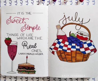β¨β¨β¨ “Embrace the sweet, simple joys of life! ππ· This delightful bullet journal spread captures the essence of summer with its vibrant colors and charming details. ππ§Ί The beautiful quote by Laura Ingalls Wilder reminds us to cherish the small moments that make life truly special. π Let this inspire you to create your own unique and joyful journal pages, celebrating each day with creativity and positivity! π¨πΈ” ππ«