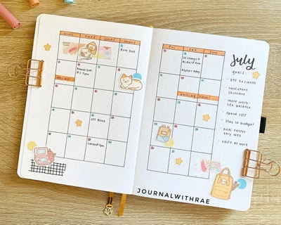 β¨β¨β¨ “Get ready to conquer July with this adorable and functional bullet journal spread! π π± The playful stickers and cheerful colors bring a touch of fun to your planning, making each day something to look forward to. π The clear layout helps you stay organized and on top of your goals, whether it’s self-care, work-life balance, or simply enjoying the little things. π§‘π Let this cute and efficient spread inspire you to personalize your own planner, turning organization into a delightful and motivating activity! π¨πͺ” ππ«