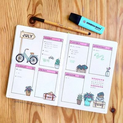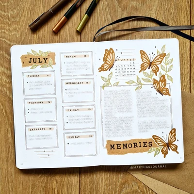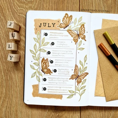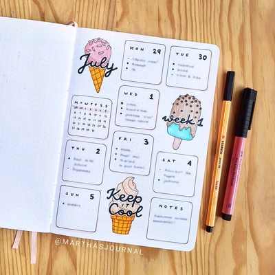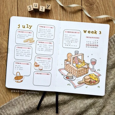 Looking for fresh inspiration to make your July bullet journal truly unique? π Youβve come to the right place! This collection features a variety of monthly and weekly spread ideas, all designed to spark your creativity and help you stay organized. Every idea in this series is brought to you by the talented @marthasjournal on Instagram. Dive into these beautiful and functional layouts, and transform your bullet journal into a work of art! π¨
