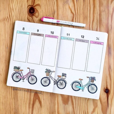 “Pedal through your plans with this charming bicycle-themed July bullet journal spread! π΄ββοΈπΌ Each page is adorned with delightful illustrations of vintage bikes, flowers, and travel elements, perfect for capturing the essence of a leisurely summer ride. π»π Track your habits, moods, and weekly events while enjoying a breezy and uplifting design. πΏποΈ Let your journey through July be as joyful and free-spirited as a bike ride through blooming fields! π²π”