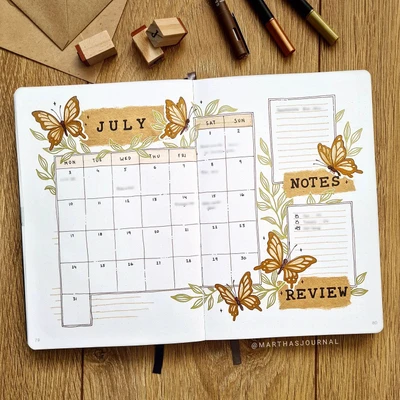 Step into the serene beauty of July with this enchanting “Rustic Butterflies” theme. Each spread is adorned with delicate butterflies and lush greenery, creating a tranquil and inspiring space for your thoughts, plans, and reflections. Embrace the calm and elegance of nature as you organize your month with notes, reviews, to-do lists, and memories. Let these peaceful designs guide you through a productive and harmonious July. πΏβοΈ