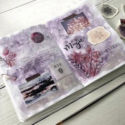 🌙 “Reflect and dream with a moonlit journal entry! 🌙 This spread features vintage elements and lunar themes, perfect for introspective writing and creative planning. 🌒✨ The artist’s use of mixed media and delicate details create a page rich in texture and depth. 🌛” 🌠🖋️