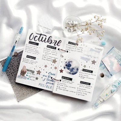 🌙 “Celebrate October with a moonlit layout! 🌙 This spread highlights the beauty of the moon phases, accompanied by celestial illustrations and a cool color palette. 🌒✨ The artist’s attention to detail and thematic consistency make this page both visually stunning and practical. 🌟” 🌕📅