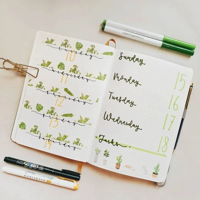 π Infuse your bullet journal with the calming beauty of green designs! π