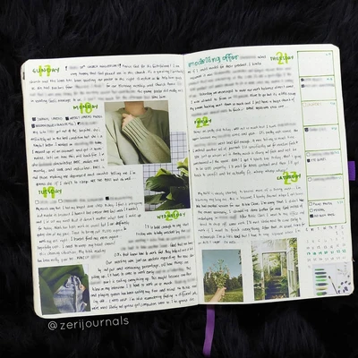 “Take a moment to reflect amidst the greenery. πΏ This spread combines journaling with beautiful green accents, creating a peaceful space for your thoughts. πΈβ¨ It’s a lovely way to connect with nature and yourself. π”